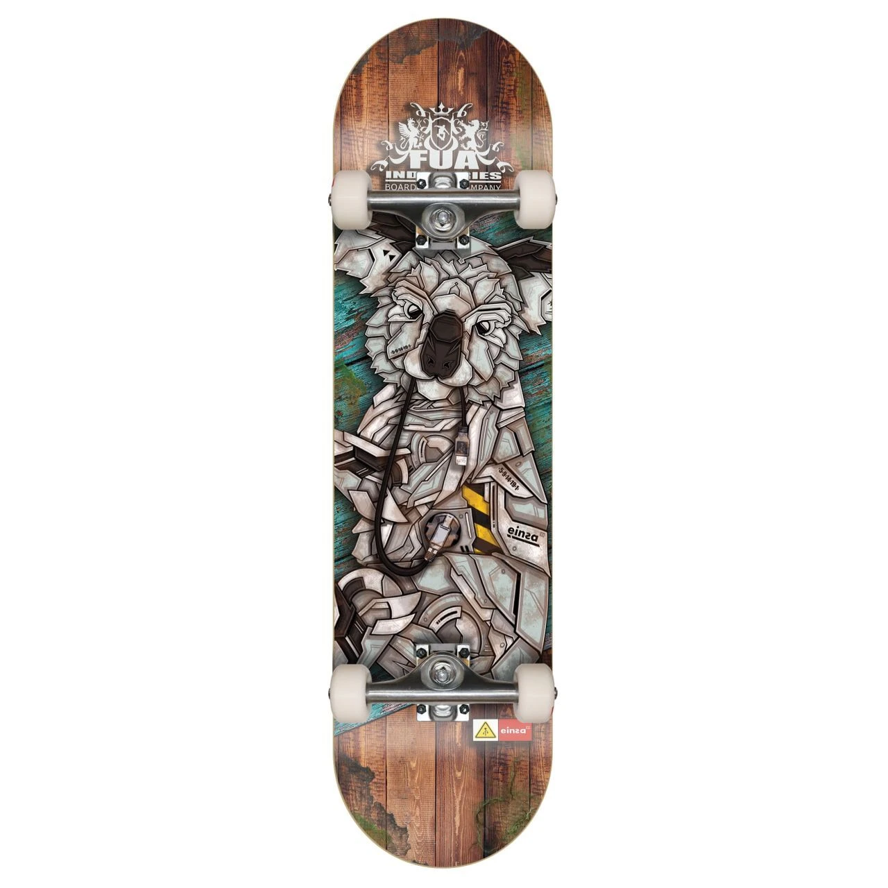Das Komplett-Skateboard einsA ce Koala von FUA Skateboards ist mit hochwertigen Markenkomponenten ausgestattet.
