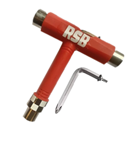 Das Rock Star Bearings Classic Tool ist ein Multifunktionswerkzeug mit integriertem Inbus / Kreuzschlüssel und zustäzlich drei Nutsgrößen für Kingpin- , Achsen- und Montagemutter.